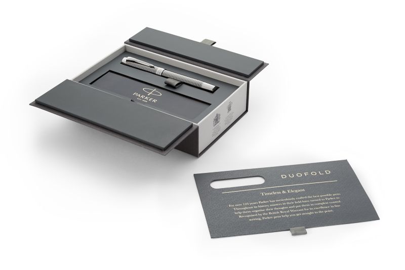 Ручка роллер Parker Duofold Prestige Ruthenium Chiselled CT от официального дилера Parker в Великом Новгороде. Вы можете дополнительно заказать гравировку, которая подчеркнет Вашу оригинальность и придаст памятность статусному подарку. Все ручки Паркер поставляются в фирменном футляре.